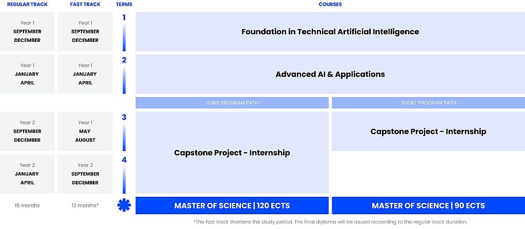 The program provides flexibility with two exit paths, as students can finish the Capstone Project in one or two terms.
