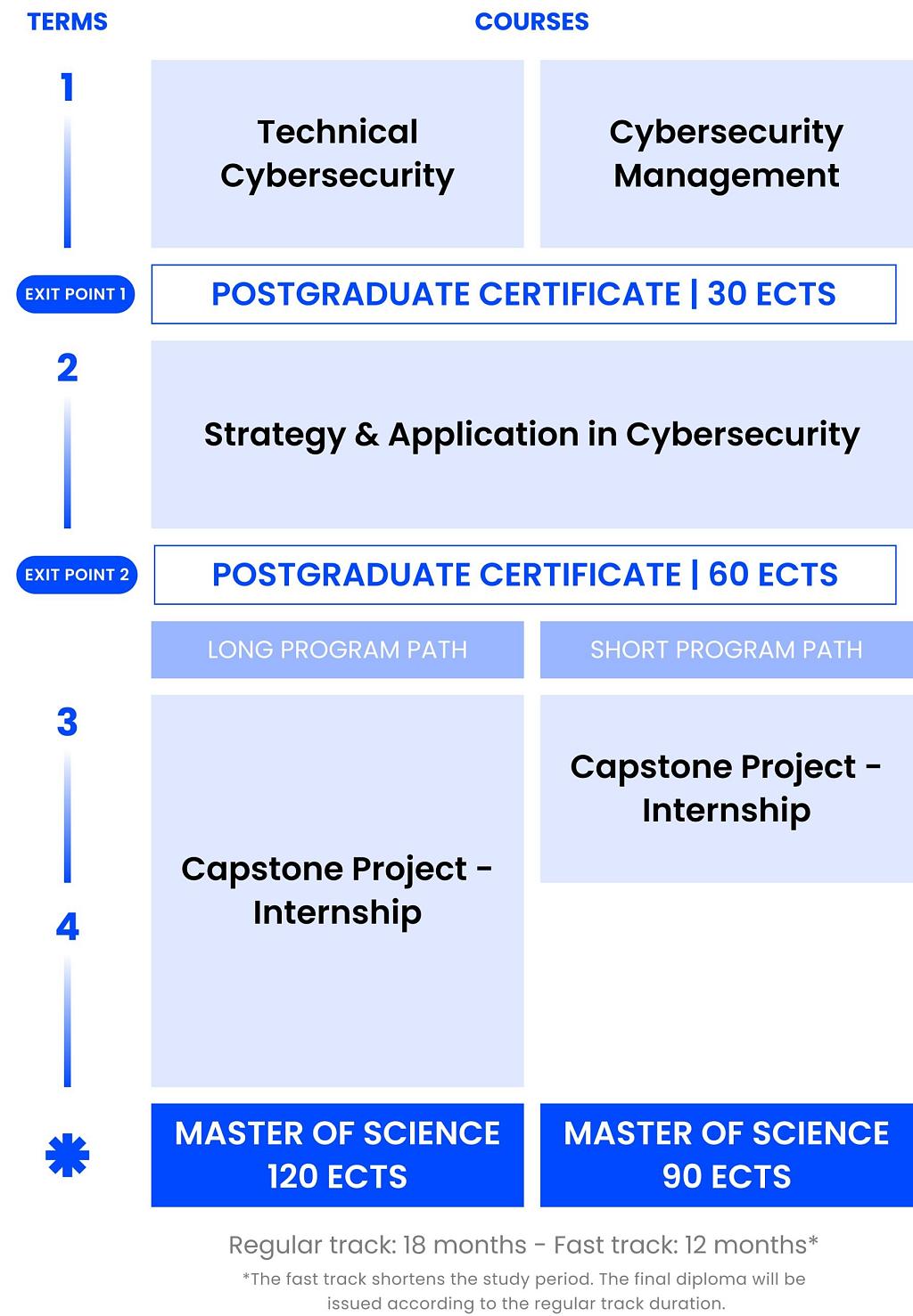 - Duration 3 or 4 terms (12-24 months)
