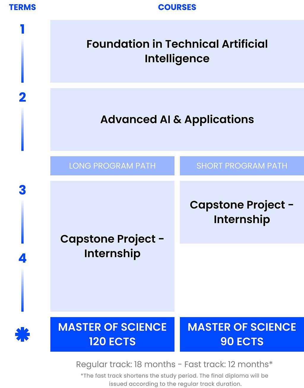 Graduates of this MSc program will emerge as versatile AI professionals, adept in foundational and advanced AI concepts. They will apply AI principles responsibly to develop applications, models, and software, addressing real-world challenges in industry and research. The program unlocks diverse career opportunities, with graduates well-prepared for roles such as: